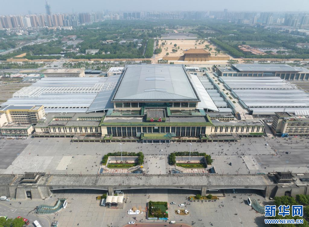 这是西安火车站与其身后的大明宫国家遗址公园(4月25日摄,无人机照片)。新华社记者 邵瑞 摄