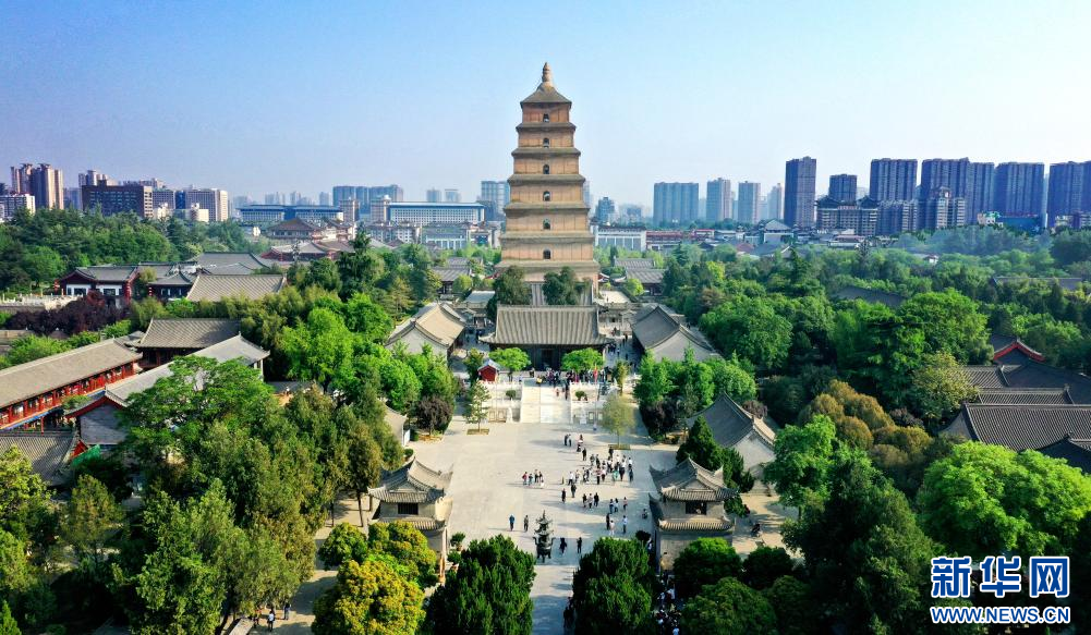 这是西安大雁塔(4月19日摄,无人机照片)。新华社记者 刘潇 摄