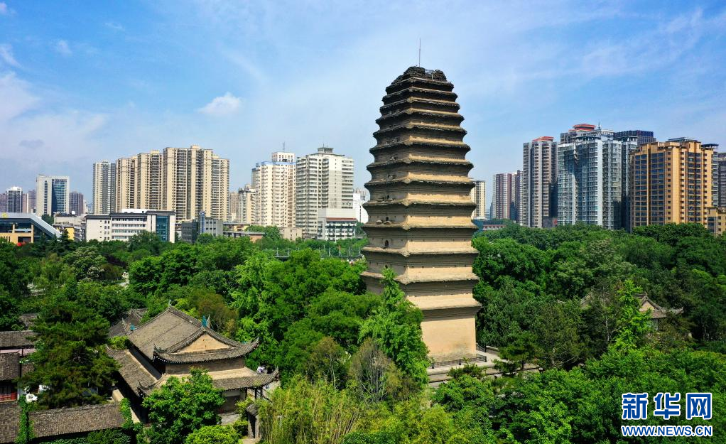 这是西安小雁塔(5月8日摄,无人机照片)。新华社记者 刘潇 摄