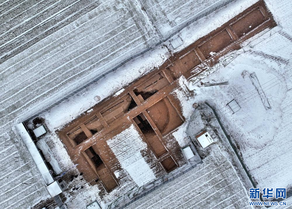 这是河南汉魏洛阳城宫城遗址的宫城东墙发掘区全景(1月14日摄,无人机照片)。新华社记者 李安 摄