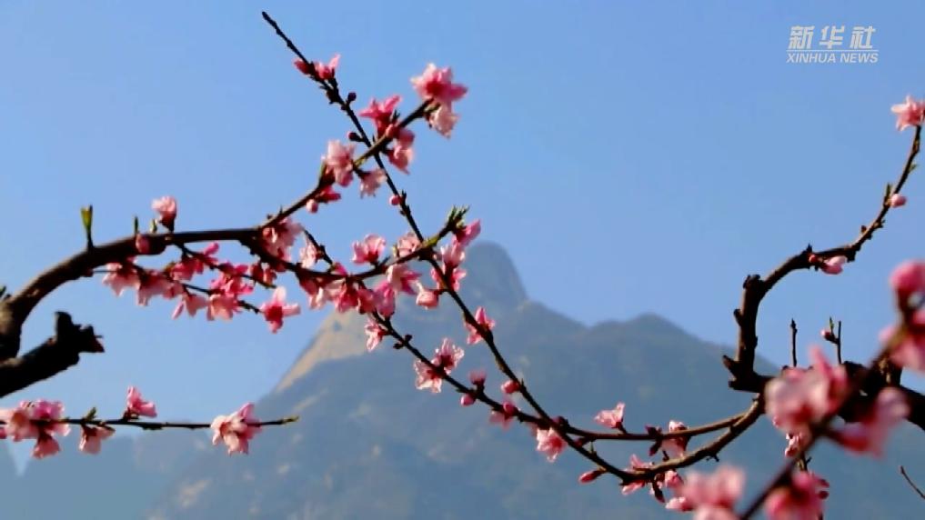 放眼望去,山下桃花烂漫,山上群峰竞秀,构成了一幅绝美的春日画卷。
