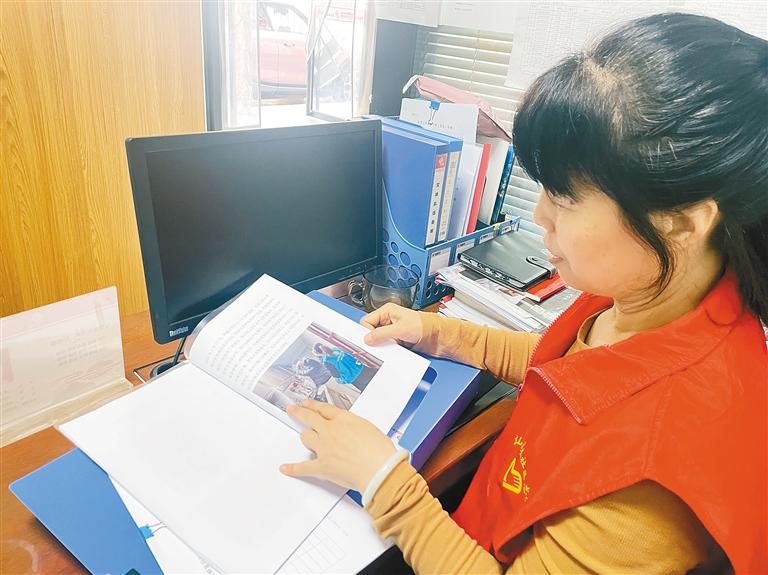 庞敏渊向记者介绍她和队员调解过的矛盾纠纷。