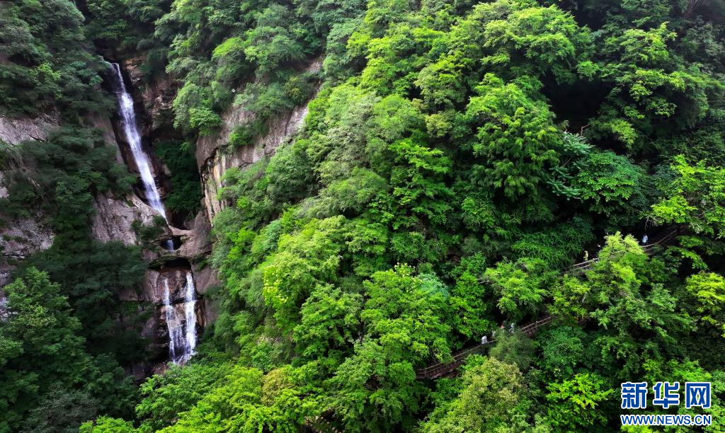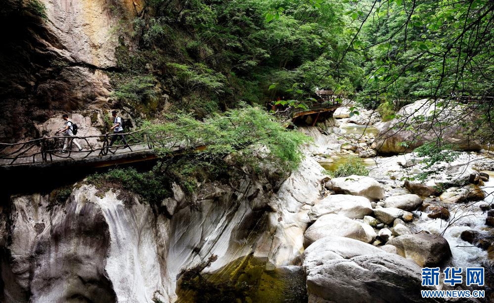 游客在西安太平国家森林公园游览(5月26日摄)。