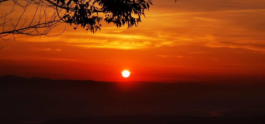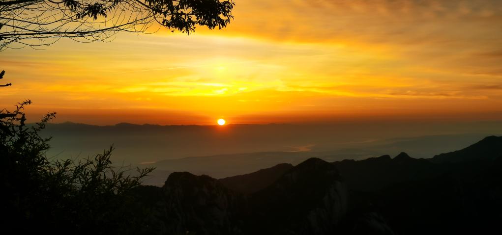 仲夏,西岳华山,一轮红日徐徐升起,在万丈朝霞的映照下,险峻的山峰和黄河染上了绚丽的色彩,美不胜收。