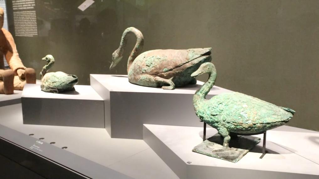 秦始皇陵发掘出土的珍贵水禽,包括青铜雁、青铜鹤、青铜天鹅等。