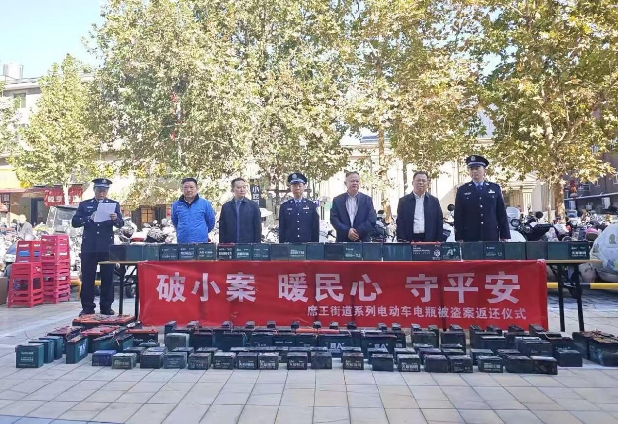 10月22日,西安市公安局灞桥分局席王派出所举行涉案财物返还仪式,将破案追回的200余块、价值8万余元的被盗电瓶,现场返还给受害群众。