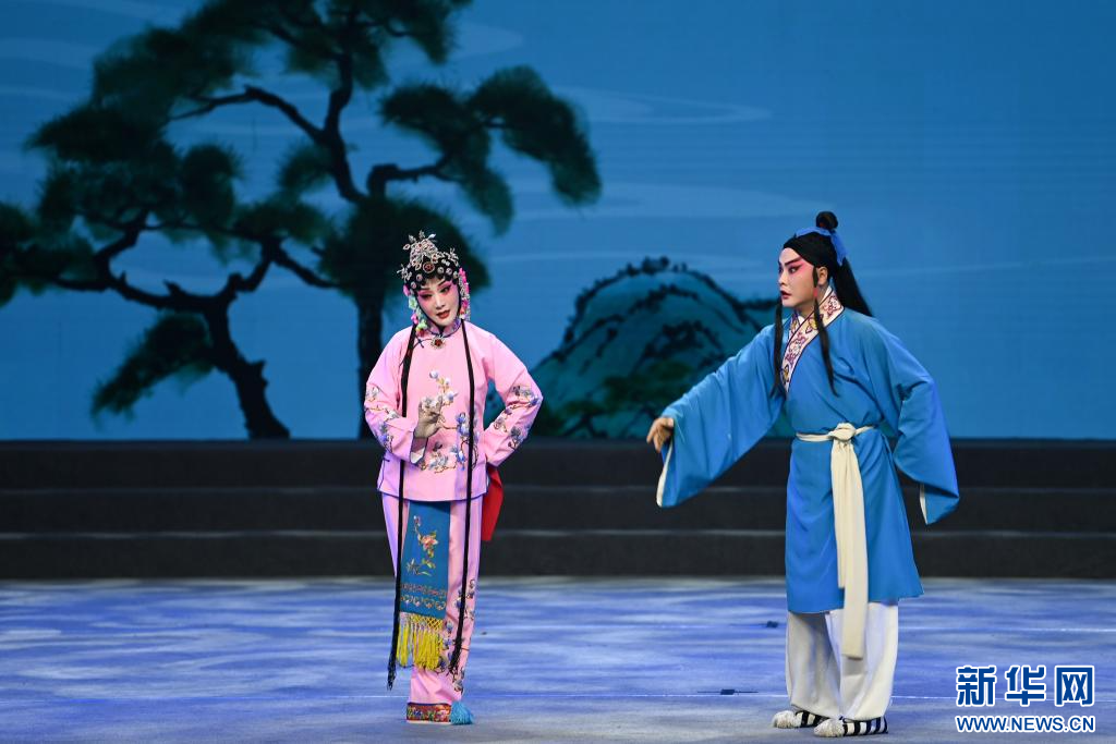 11月1日,演员在第十届秦腔艺术节开幕式上表演秦腔现代戏《迟开的玫瑰》。