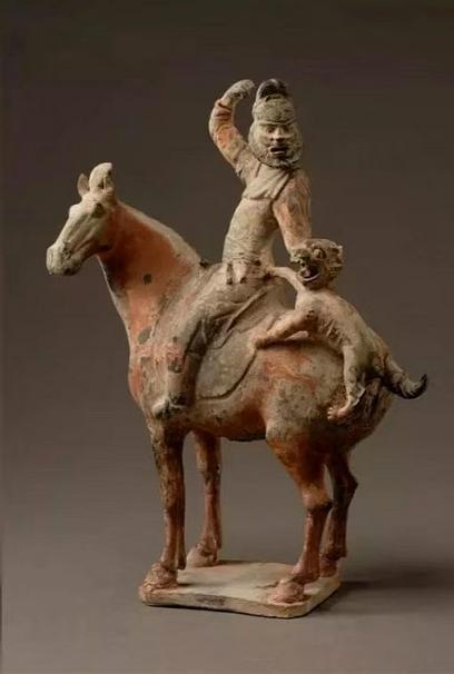 图为唐彩绘胡人骑马斗豹俑。新华社发
