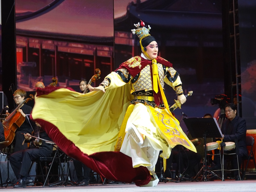 当晚,李东桥以成名作——秦腔历史剧《千古一帝》选段开场,大气磅礴的秦风秦韵,壮丽恢弘的历史画卷与李东桥纤毫毕现、入木三分的表演及慷慨激扬、韵味浓郁的唱腔相得益彰。接着,李东桥又连续演唱了《蔡伦》《太尉杨震》《杜甫》《西京故事》等大戏中的核心唱段。最后,李东桥演唱了秦腔《红灯记》“雄心壮志冲云天”选段。著名川剧表演艺术家沈铁梅、著名评剧表演艺术家冯玉萍、著名晋剧表演艺术家谢涛、著名京剧表演艺术家胡文阁、著名秦腔表演艺术家李梅等名家也上台演唱了各自剧种名段,让戏迷们过足了戏瘾。