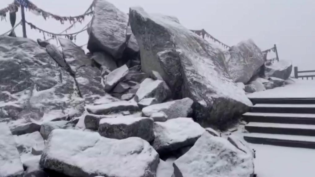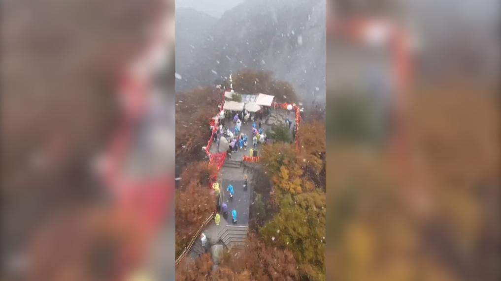 16日早9时10分,陕西华山景区迎来今冬第一场降雪,雪花夹杂雨滴纷纷飘洒,至10时20分降雪结束。