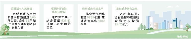 推进城乡融合发展。2021年以来,全省县城市政基础设施完成投资2402亿元,供排水、燃气、供热等管道共计增加1450余公里,绿地面积增加1300公顷,改扩建污水处理厂73座,污水日处理能力提高15万立方米。2021年以来,省上支持的100个重点镇建设,完成投资415.57亿元,镇区建成区规模新增30.2平方公里,达442.37平方公里,常住人口新增7.83万人,达196.28万人。(记者 郭军)