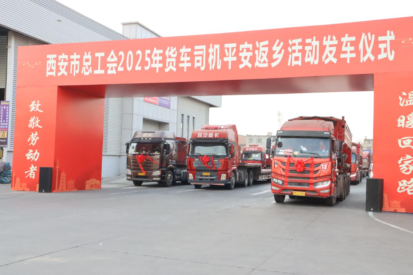 “登车、系安全带、点火、出发回家……”随着指挥人员一声令下,100余辆不同长度、不同颜色的货车,驶过物流园内的红色拱门,货车司机带着“娘家人”送来的加油卡、大礼包、新春福袋,向省内外各地“家”的方向驶去,奔向那盏为自己而亮的灯。“太暖心了,过完年后,我们将立即返程,继续努力,为西安城市的发展贡献自己的力量。”
