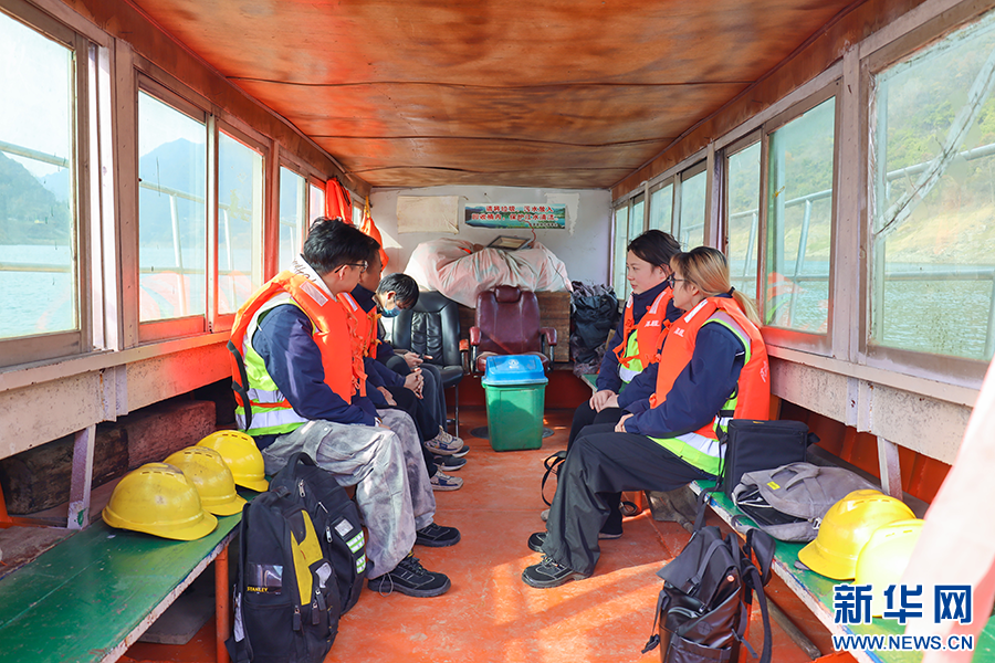 “00”后“姐妹花”姚雪和刘祎辰乘船前往作业地点进行检修作业。姜利平 摄