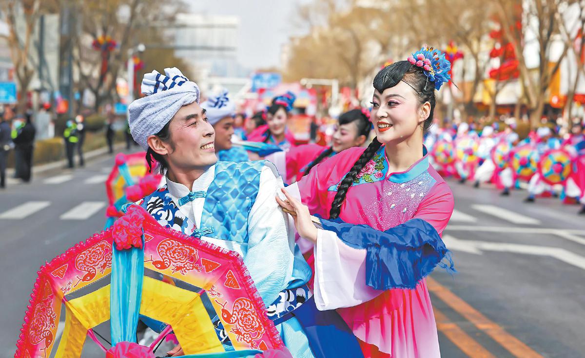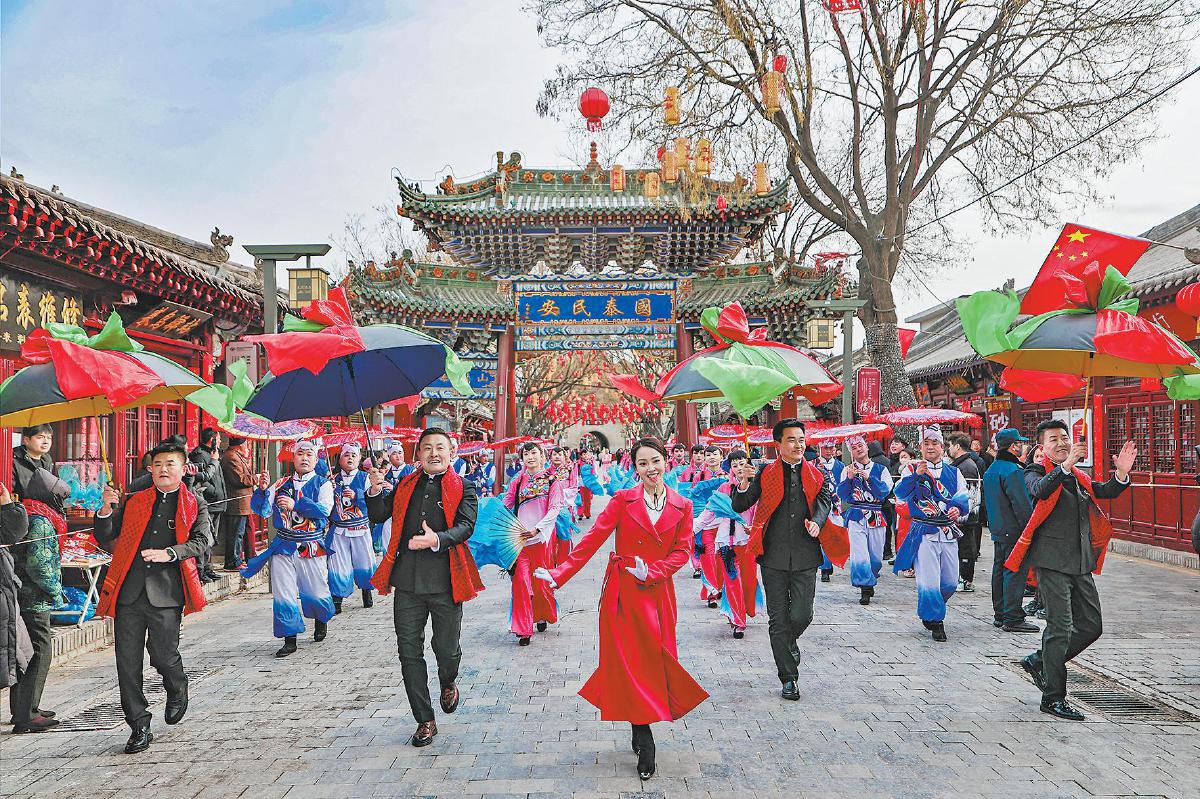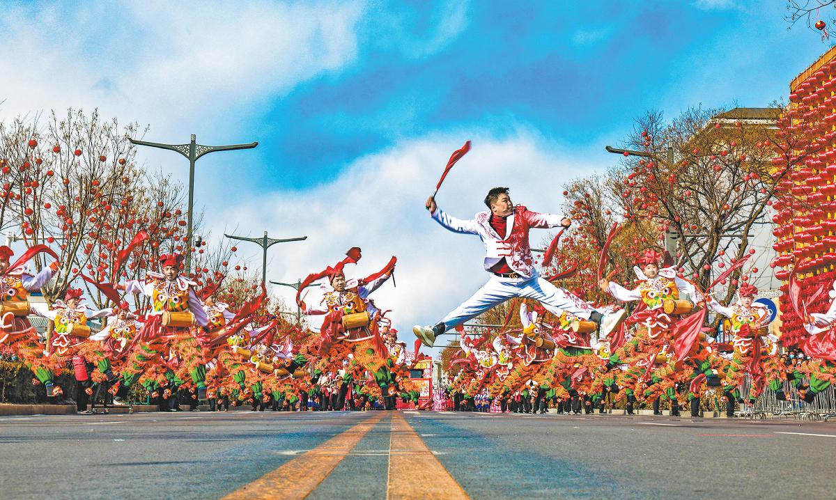 一场场蔚为壮观的秧歌盛宴在榆林大地欢腾起舞,为市民和游客带来一场极具震撼力与感染力的民俗文化盛宴。春节期间,来自全国各地的一支支衣装鲜亮、造型各异的秧歌队,在万人瞩目中陆续登场,各式各样的花车,或华丽璀璨,或质朴典雅,穿梭在秧歌队伍之间。演员们随着各具特色的音乐节奏舞动,或花伞翻飞、绸扇飘舞,或转变队形、游走花样。和谐共舞、欢天喜地的表演,描绘出了一幅“各美其美、美美与共”的文化图景。