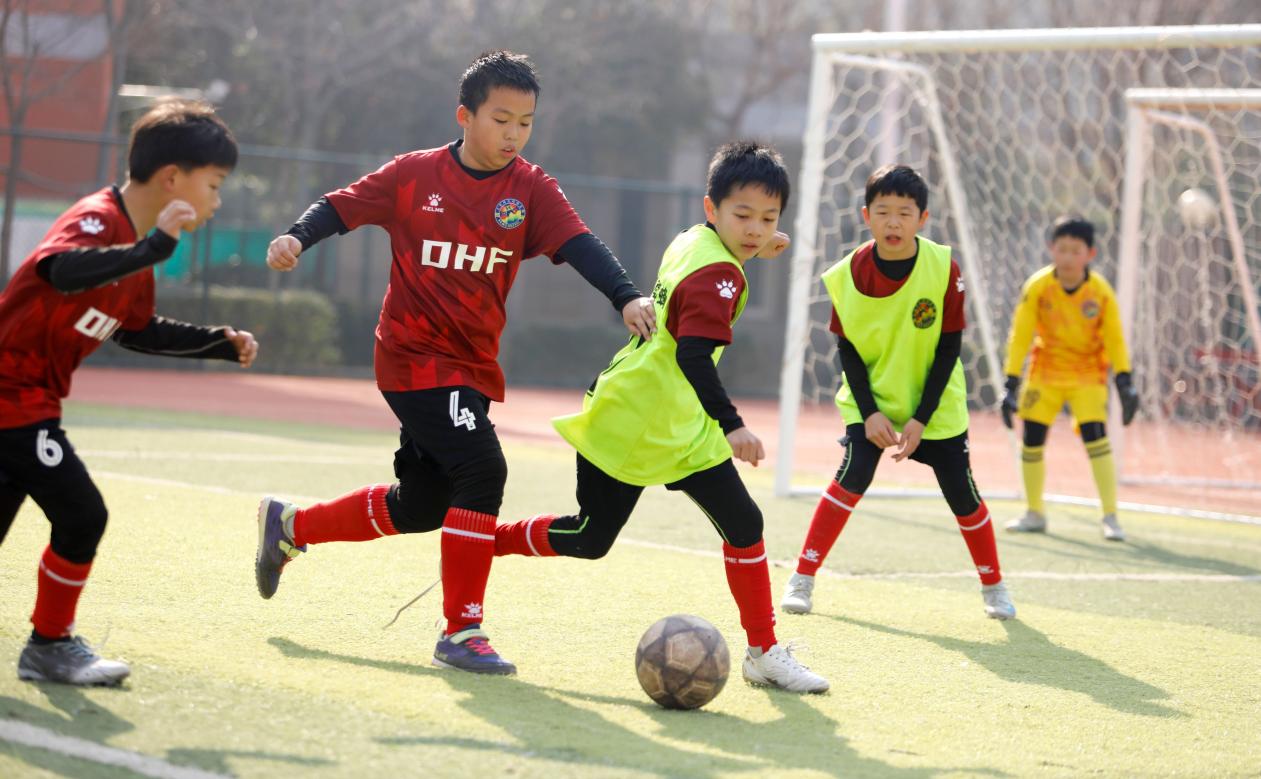 2025年2月27日,陕西省渭南市临渭区丰荫明德小学,小学生在体育课上进行足球比赛。崔正博 摄