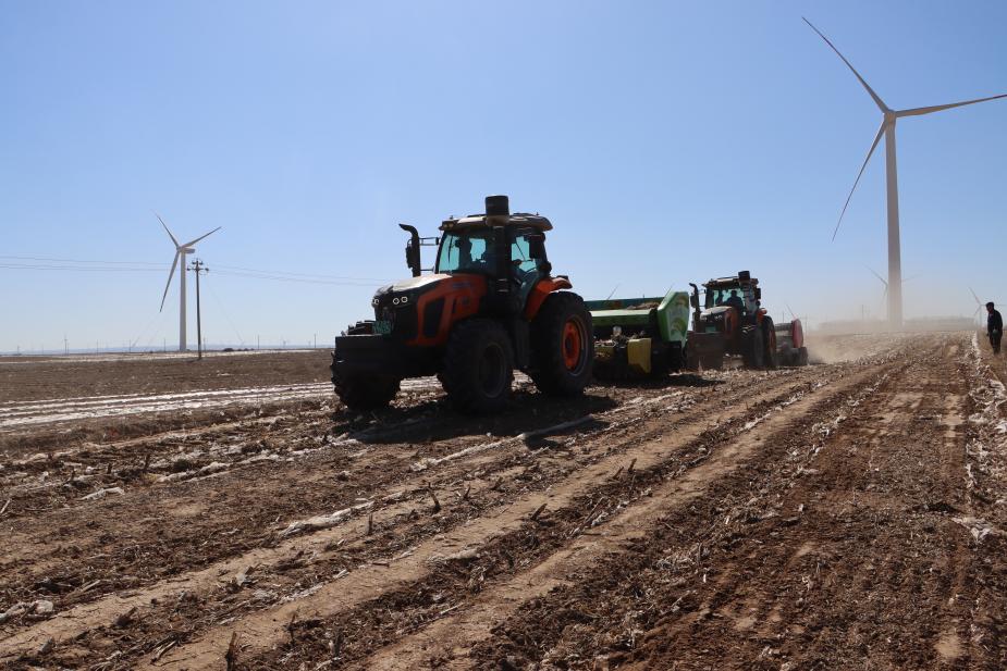 近日,在陕西省榆林市定边县贺圈镇马沟泉村,三台残膜回收机马力全开,在田间穿梭,快速卷起残膜,集中收纳。