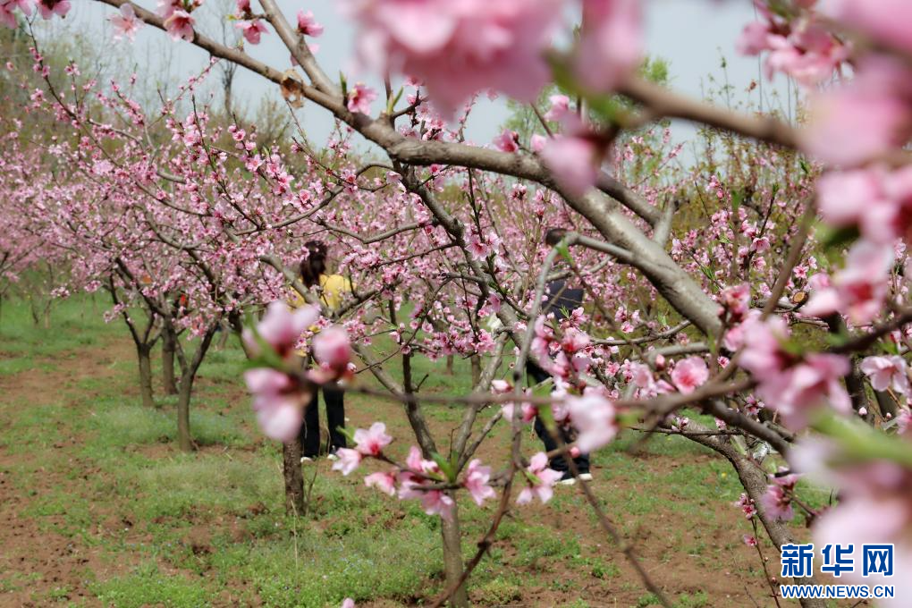 游客在西安市鄠邑区柳泉口村桃花林拍照留念。苏朋 摄pagebreak