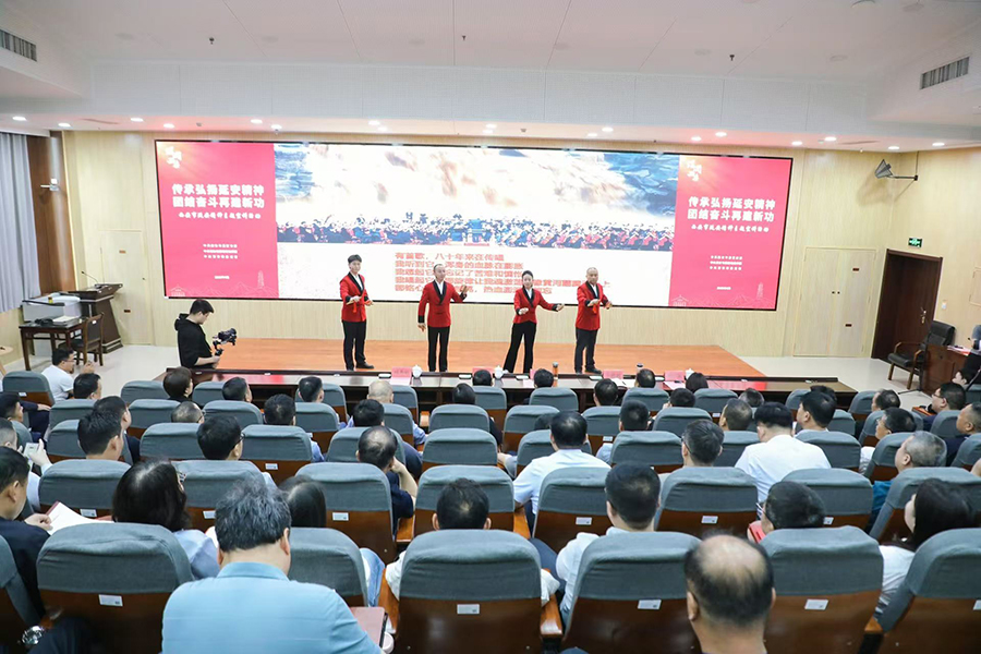 西安市延安精神宣讲团采用主题宣讲、歌曲、群口快板、陕北说书等多种文艺宣讲方式,通过《延安的窑洞有马列主义》《南泥湾》《燃烧的音符》等节目,从一个个接地气的“小故事”出发,讲述延安精神这一“大主题”,演员们的表演精彩纷呈,为观众带来了丰富的视听体验,同时也是一次深刻体悟老一辈革命家艰苦奋斗历程的精神洗礼。第28期中青年干部培训班学员带来了精心准备的情景剧《薪火》,现场掌声雷动,反响热烈。