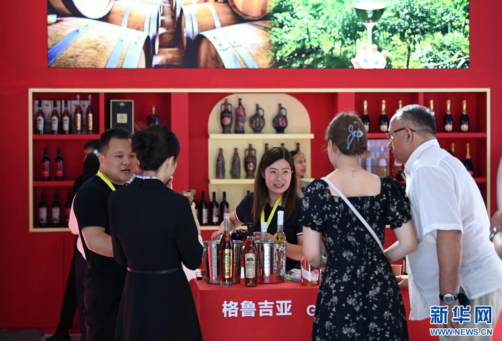 5月21日,在第九届丝绸之路国际博览会暨中国东西部合作与投资贸易洽谈会丝路优品展上,参观者了解格鲁吉亚商品。