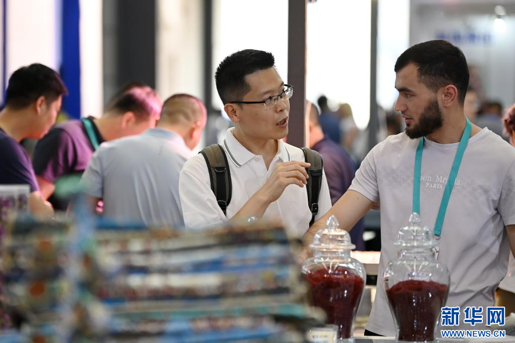 5月21日,在第九届丝绸之路国际博览会暨中国东西部合作与投资贸易洽谈会丝路优品展上,参观者与参展商交流。