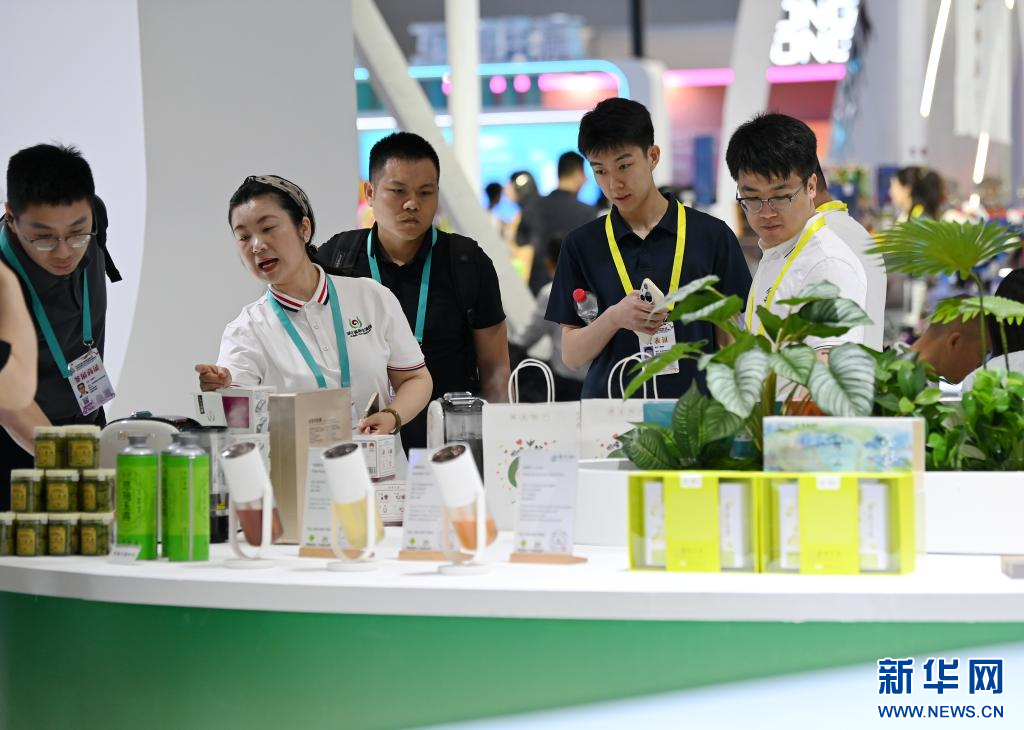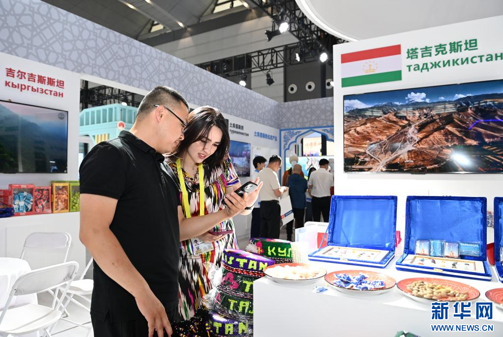 5月21日,在第九届丝绸之路国际博览会暨中国东西部合作与投资贸易洽谈会丝路优品展上,参观者了解塔吉克斯坦商品。