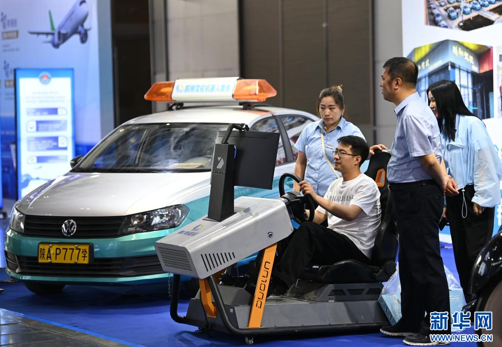 5月21日,在第九届丝绸之路国际博览会暨中国东西部合作与投资贸易洽谈会交通物流展上,参观者体验模拟驾驶。
