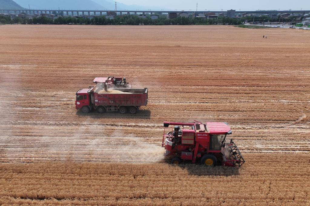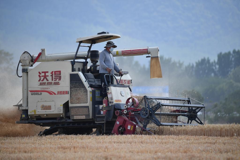 5月28日,收割机在西安市鄠邑区庞光街道庞新社区进行作业。新华社记者 邵瑞 摄