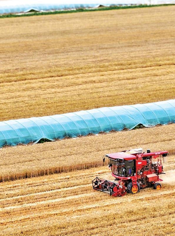 当前,我省夏收工作陆续展开。6月4日,在西安市阎良区关山街道新义村,收割机在抢收小麦。 群众新闻记者 许奥博 摄