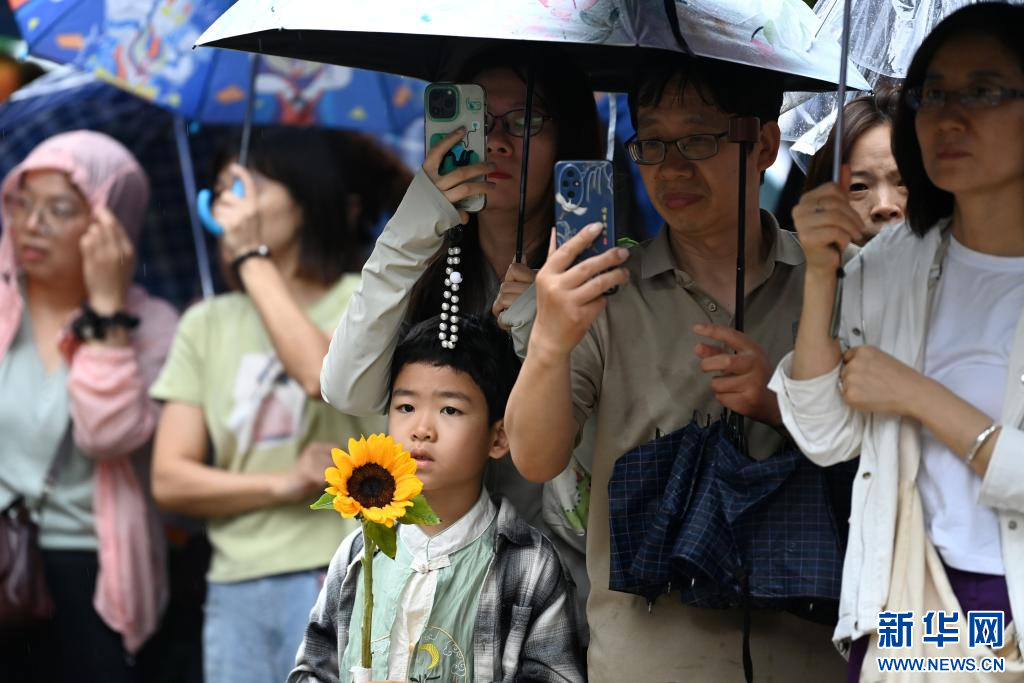 6月7日,在西安交通大学附属中学兴庆校区考点外,考生家属目送考生入场。当日,2025年全国高考拉开帷幕。新华社记者 邹竞一 摄