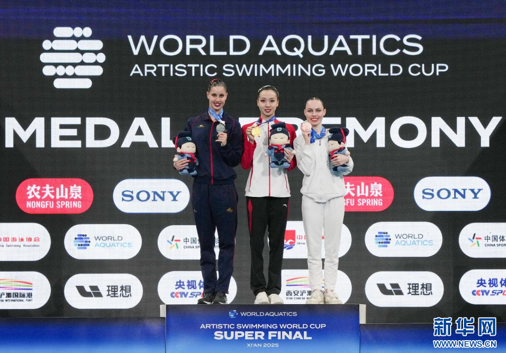 当日,2025年世界泳联花样游泳世界杯总决赛女子单人技术自选决赛在西安奥体中心游泳跳水馆举行。
