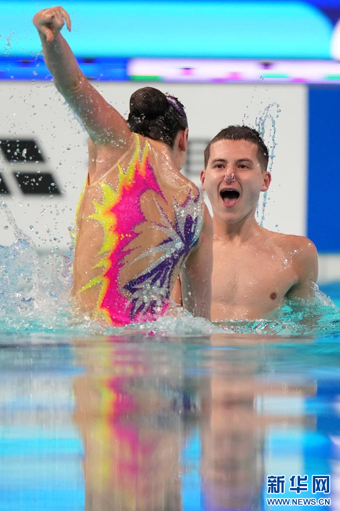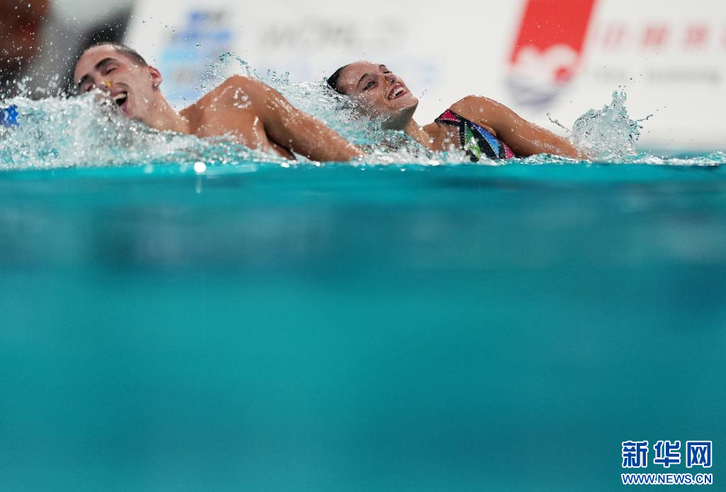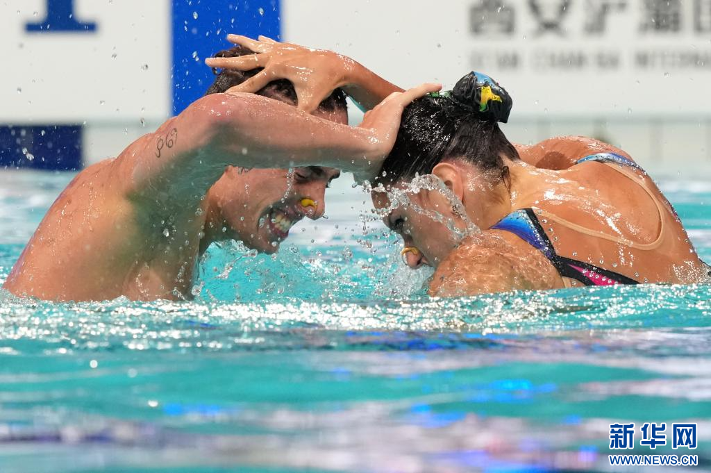 当日,2025年花样游泳世界杯总决赛混合双人技术自选决赛在西安奥体中心游泳跳水馆举行。