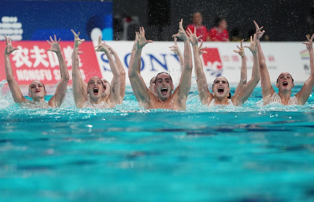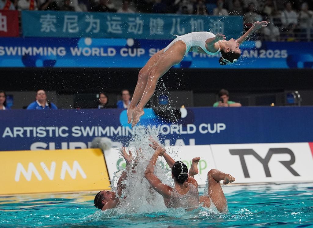 当日,2025年花样游泳世界杯总决赛集体技巧自选决赛在西安奥体中心游泳跳水馆举行。pagebreak