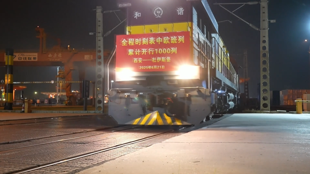 6月21日3时55分,随着满载汽车配件、LED显示屏等货物的X8155次全程时刻表中欧班列(西安—杜伊斯堡)从西安国际港站缓缓驶出,全程时刻表中欧班列累计开行突破1000列。