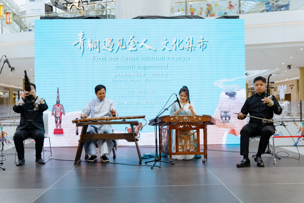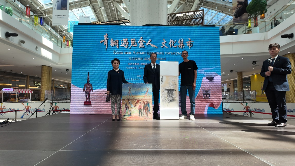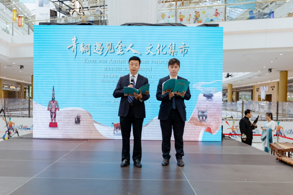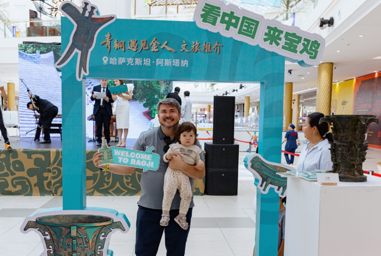 周礼文化节目展演以音乐为媒介,“声”入人心;何尊铭文、青铜器纹饰拓印,印出古老中国底蕴;“丝路长卷”现场共绘,纸语丹青民相亲……6月24日,由宝鸡市人民政府主办的“青铜遇见金人”文化市集,在哈萨克斯坦首都阿斯塔纳MEGA丝路商场举办,近千名当地市民驻足别具风格的摊位,沉浸式体验中华周文化的魅力。