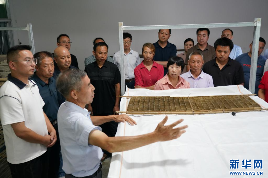 6月23日,在安康市汉阴县涧池镇五坪村,技术人员对多名第一书记和养蚕户进行省力化蚕台养蚕技术培训。