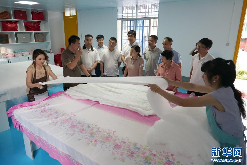 6月23日,安康市汉阴县涧池镇、蒲溪镇等地的多名第一书记在当地一家蚕丝被生产企业观摩产品制作过程。