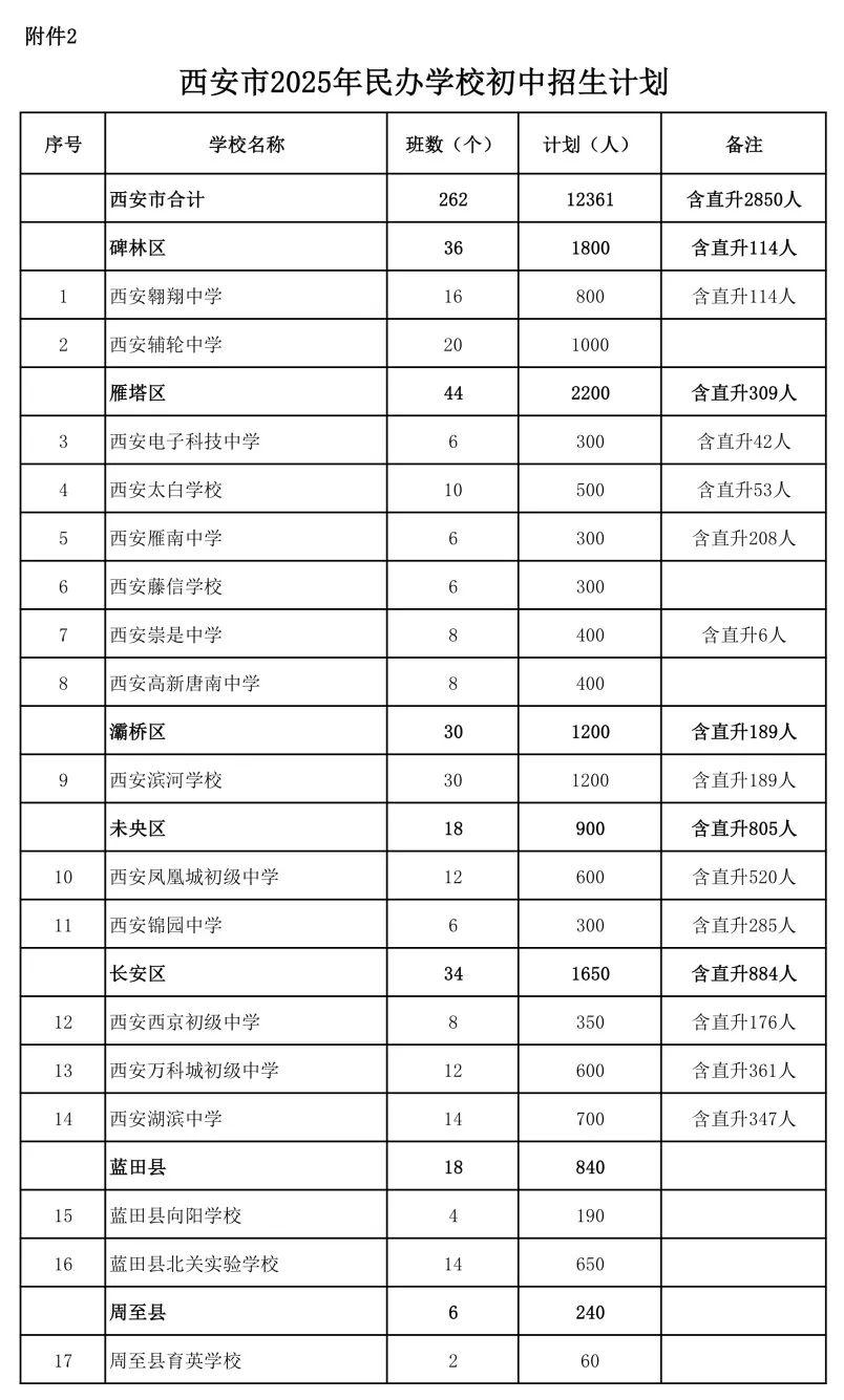 按照西安市2025年义务教育招生入学工作安排,各区县、开发区教育局根据教育部规定的班额标准,综合考虑学校办学规模、办学条件等因素编制上报了民办学校初中招生计划数。经我局核定,现将《西安市2025年民办学校初中招生计划》(见附件)印发你们,请遵照执行,并就有关事项通知如下: