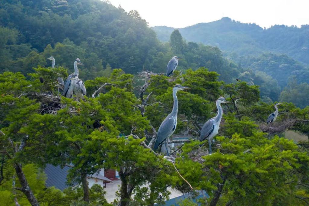 “村里依托苍鹭种群,精心打造‘一树苍鹭’景区,并培育壮大绿色产业,让生态与发展同频共振。”高桥镇党委书记李平全介绍,裴坝村修建了观鸟台,配置了固定式扫码望远镜,方便游客欣赏苍鹭的优雅身姿。同时,由村集体牵头成立旅游公司,对景区进行专业化运营,旅游营业年收入达10万元。村民李秀品在栖息苍鹭的铁坚杉附近租了小院,开起了农家乐。“旺季一个月就能赚上万元,日子越过越有盼头了!”