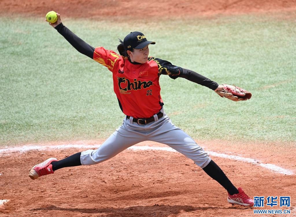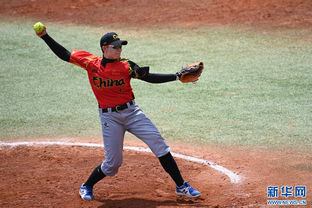 7月15日,中国队球员柴燚楠在比赛中投球。