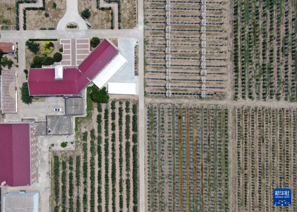 6月10日在陕西省渭南市白水县拍摄的西北农林科技大学白水苹果试验站(无人机照片)。新华社记者 李一博 摄