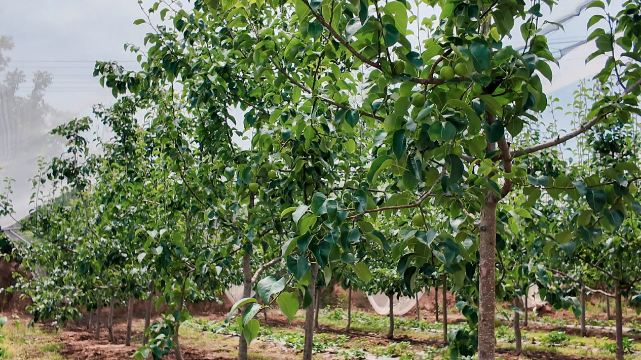 在韩庄村集体经济翡翠梨园里,青果挂满枝头,泛着润泽光泽。特色种植产业成为村集体经济增收的重要支撑。pagebreak