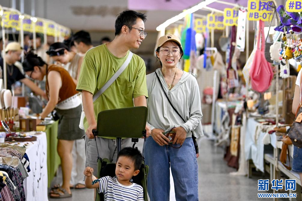 7月27日,游客在西仓市集文创公园内的“新二手市集”上参观。