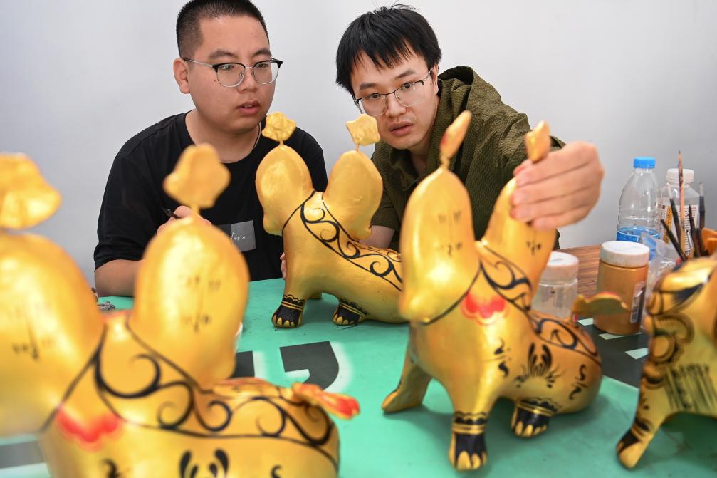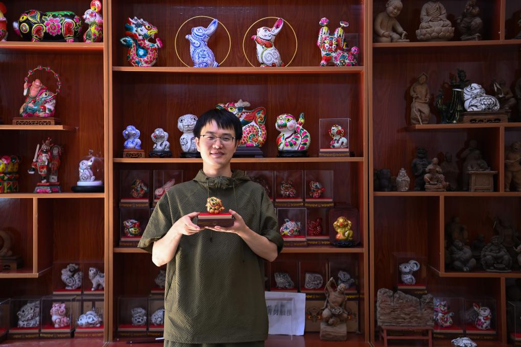 “现在温度高,是赶制胚体的好时候。”在六营村的凤翔泥塑传习所,非物质文化遗产代表性传承人、“90后”胡锦伟边介绍,边熟练地捏制一款生肖泥塑。“我设计的这款萌宠系列更符合年轻人审美,市场反响很好。”