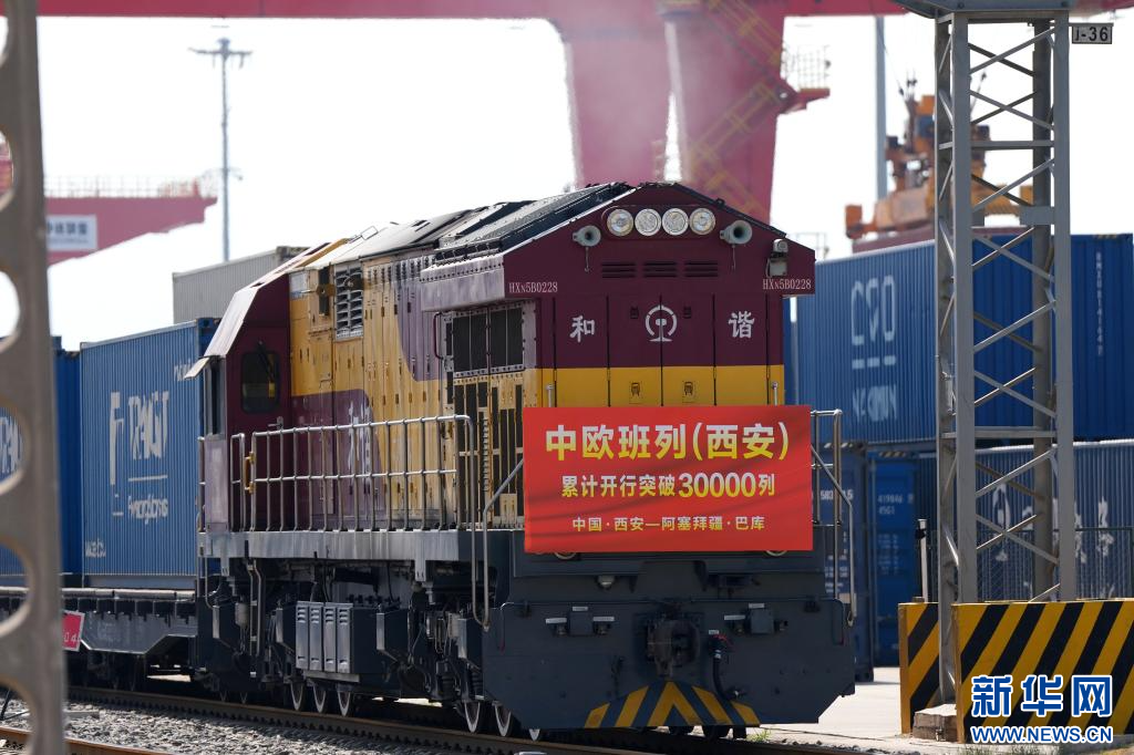 当日上午,满载着55个集装箱光伏组件的X9043次中欧班列从西安国际港站驶出,开往阿塞拜疆巴库,标志着中欧班列(西安)自2013年开行首列以来累计开行突破30000列,开行总量超过全国中欧班列累计开行总量的四分之一。西安国际港站也成为了全国首个中欧班列开行量突破30000列的车站,开行量、货运量、重箱率等核心指标位居全国第一。