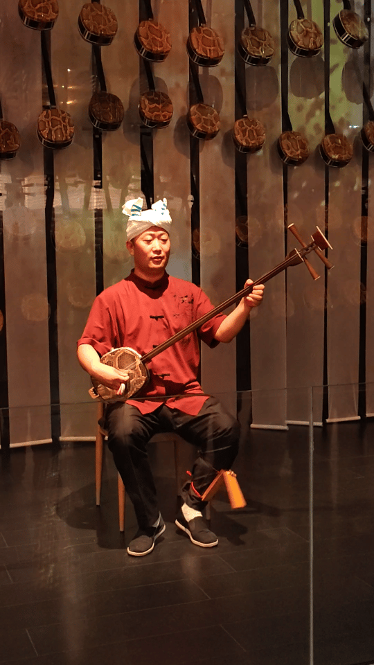 这是现场表演陕北说书的演员。新华社记者 张申博 摄