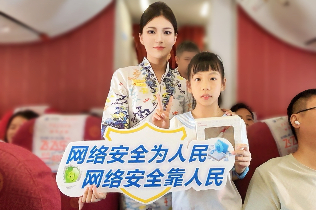 " 這趟主題航班是網(wǎng)絡(luò)安全宣傳的一次創(chuàng)新嘗試,旨在倡導(dǎo)民航旅客依法文明上網(wǎng)、安全上網(wǎng),讓旅客有效識(shí)別和防范網(wǎng)絡(luò)威脅,切實(shí)增強(qiáng)旅客的網(wǎng)絡(luò)安全意識(shí)和防護(hù)能力,營(yíng)造全社會(huì)共筑網(wǎng)絡(luò)安全防線的濃厚氛圍。"