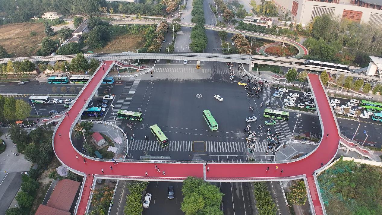 它與灃惠綠道天橋一起組成全方位環(huán)形過(guò)街設(shè)施,并與有軌電車銜接,可以實(shí)現(xiàn)行人安全、快速集散,發(fā)揮重要的交通疏導(dǎo)作用。