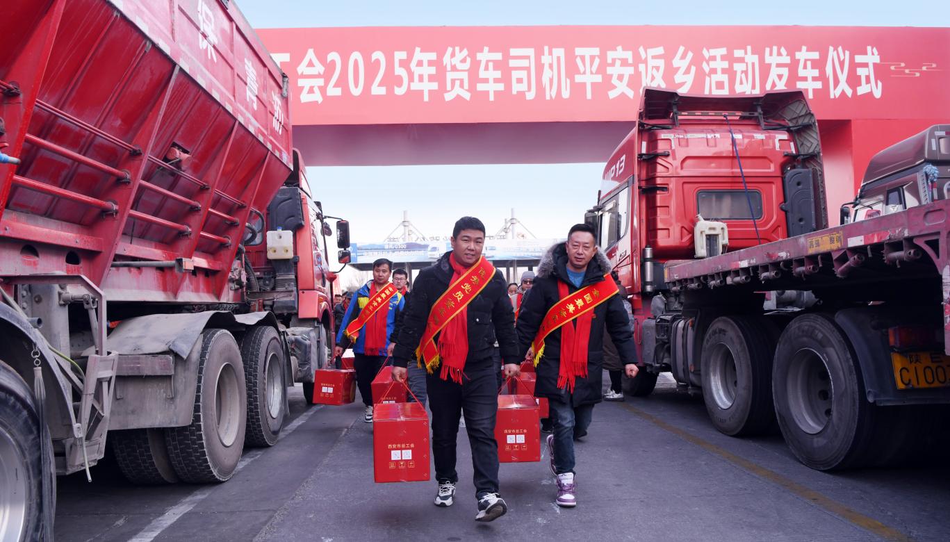 "活動(dòng)現(xiàn)場(chǎng),西安市總工會(huì)為返鄉(xiāng)貨車司機(jī)們贈(zèng)送了加油卡、過(guò)年大禮包。"