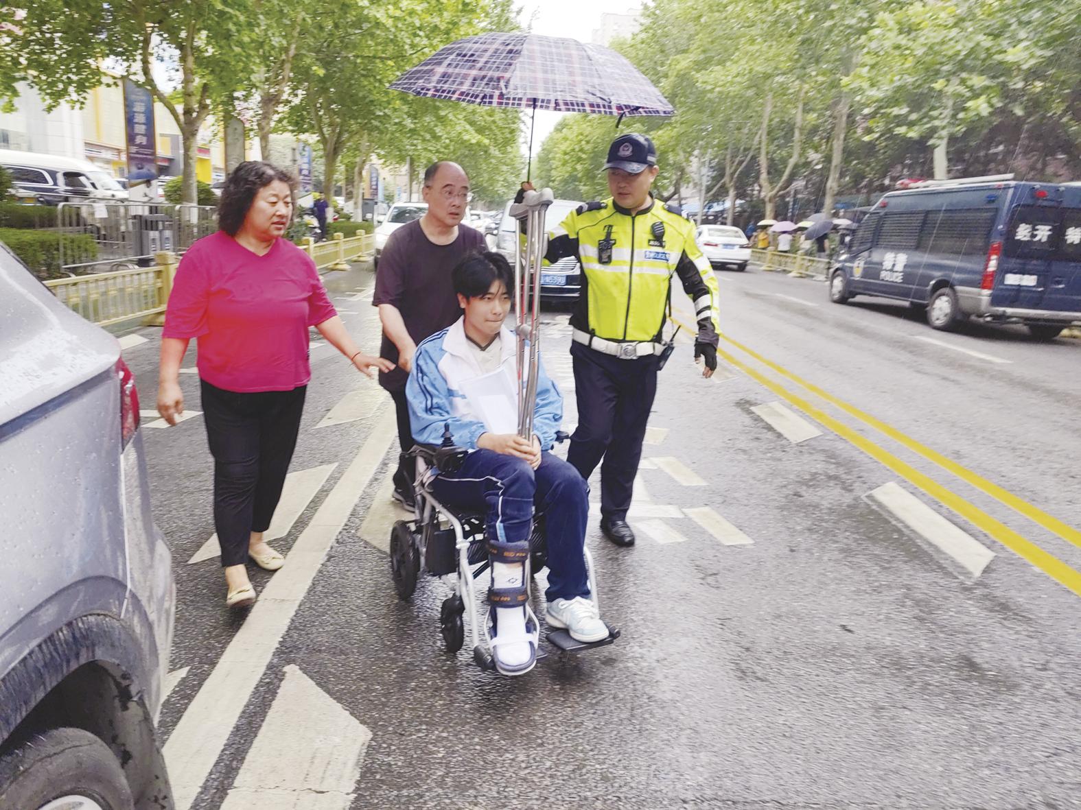 "8時(shí)40分,西安市公安局交通管理支隊(duì)經(jīng)開(kāi)大隊(duì)執(zhí)勤二中隊(duì)的鐵騎隊(duì)員在西安市第六十六中考點(diǎn)外執(zhí)勤時(shí),發(fā)現(xiàn)一名行動(dòng)不便的考生。"
