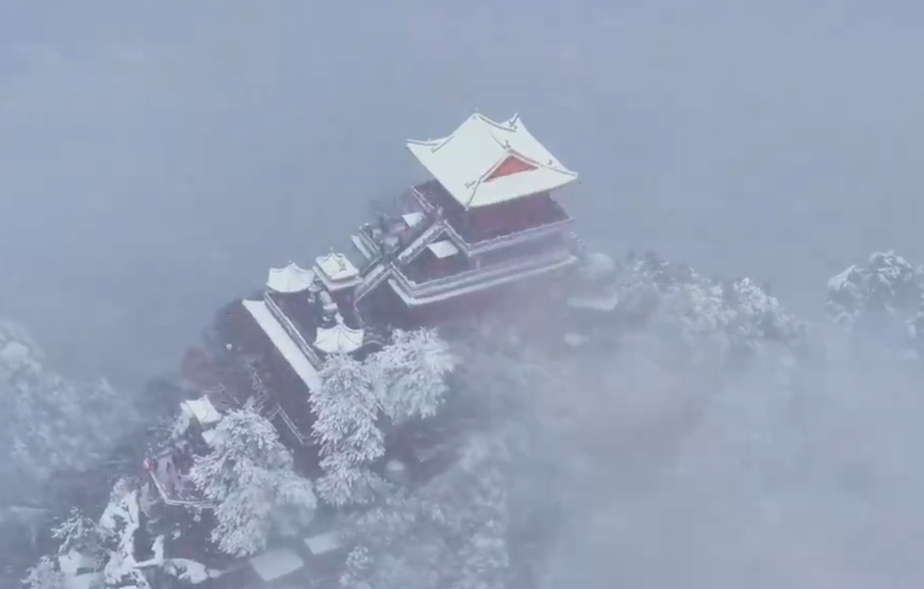 11月16日,西安終南山南五臺迎來了今冬的初雪。雪后的終南山仿佛一幅天然的水墨畫,美到極致。從遠處望去,連綿的山脈被白雪覆蓋,那起伏的山巒像是用白色顏料精心暈染而成。